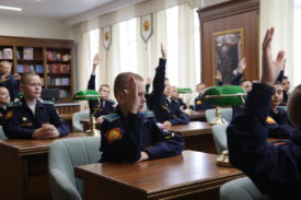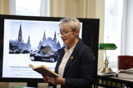 Кадеты 52 и 44 учебных взводов стали участниками встречи в библиотеке «Парад, изменивший историю», внимательно слушали рассказ преподавателя истории Юрия Горюнова и заведующей библиотекой Натальи Карзановой о ходе подготовки к параду, как развивалось сражение под Москвой, о мужестве и стойкости защитников города. Ребята узнали, что «Легендарный парад» в этот день был не единственным, парады прошли в городах Куйбышеве и Воронеже. В музыкальном эпиграфе к мероприятию кадеты безошибочно определили легендарный марш «Прощание славянки», композитора Василия Агапкина, который сопровождал парад 1941 года.