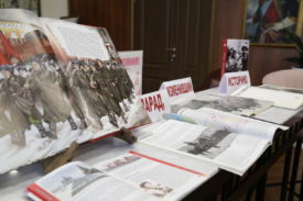 Память о том великом событии живет в фильмах, стихах, песнях, на страницах книг, представленных на книжно-иллюстративной выставке.