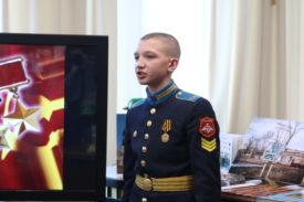Прозвучали стихи о мужестве и героизме в исполнении кадета 76 учебного взвода Савелия Селищева.