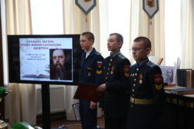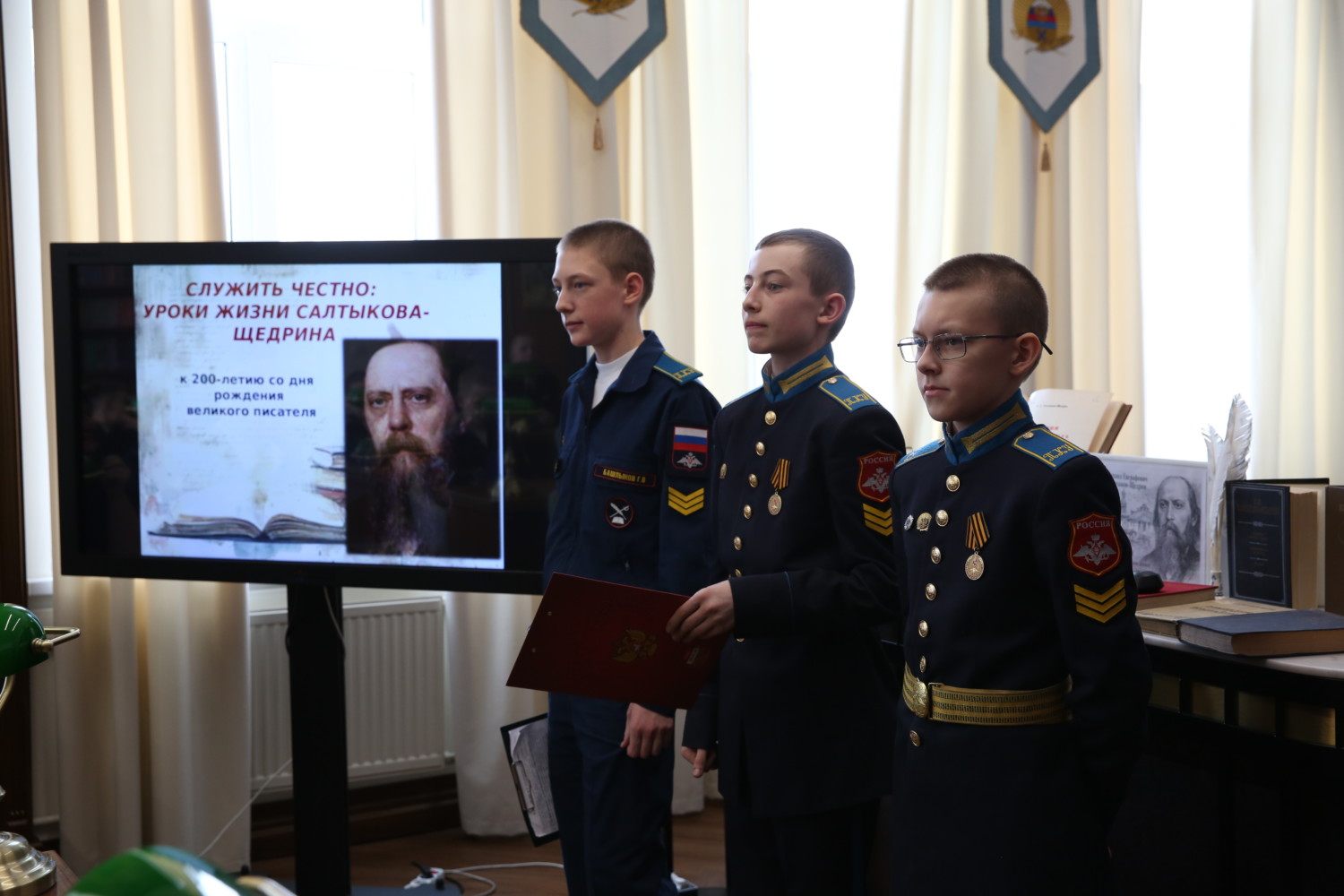 Кадеты 7 курса Алексей Прокофьев, Георгий Башлыков и Егор Вараксин под руководством преподавателей литературы Ольги Щербаковой и Натальи Абрашиковой подготовили для кадет 41 взвода интересный рассказ «Уроки Щедрина» о талантливом писателе-сатирике. Пятиклассники узнали о ключевых этапах биографии Михаила Евграфовича, о том, как формировался его уникальный взгляд на мир и общество, о его государственной службе и, конечно же, о его творческом пути, представив его не просто как автора школьной программы, а как живого человека со своими переживаниями, борьбой и стремлением к справедливости.